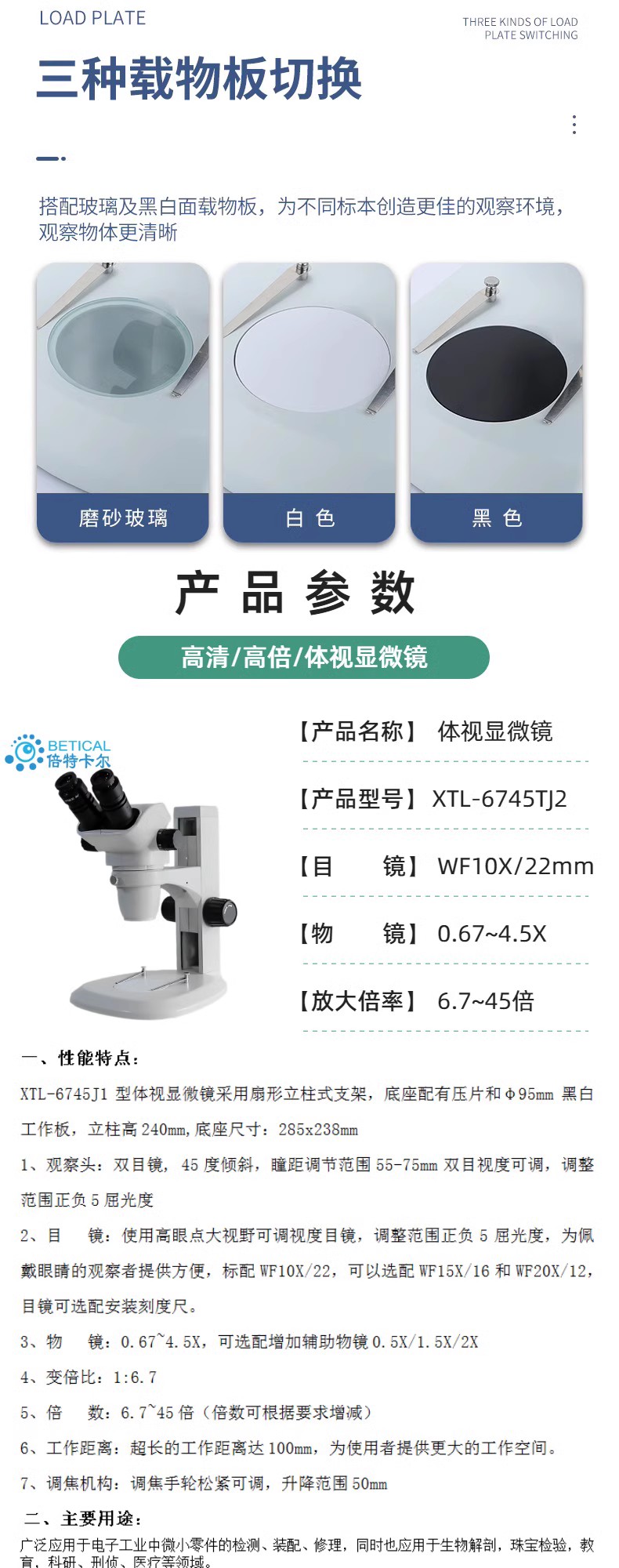 三目体视显微镜XTL-6745J3型CCD电子放大镜 解剖镜光学仪器